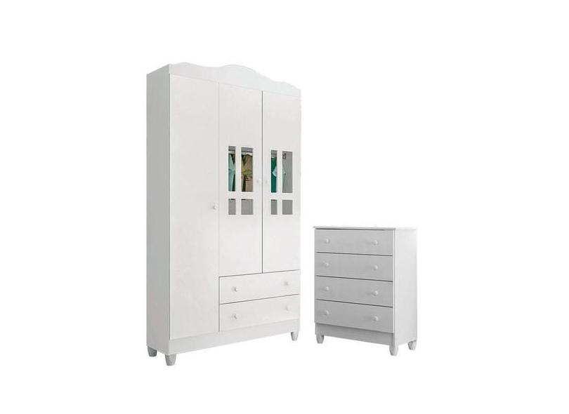 O menor preço encontrado no Brasil para Cômoda Gaveteiro E Guarda Roupa Ariel Branco Brilho - Carolina - Carol atualmente é R$ 813,96.
