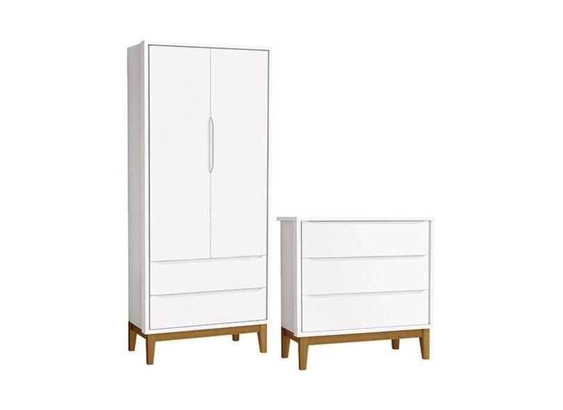 Cômoda Gaveteiro E Guarda Roupa Infantil 2 Portas New Classic Branco C