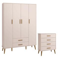 Cômoda Gaveteiro e Guarda Roupa Infantil 4 Portas Isis Rosa Acetinado - Reller