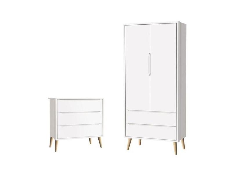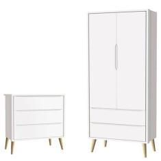 Cômoda Gaveteiro Infantil E Guarda Roupa 2 Portas Theo Branco Acetinad