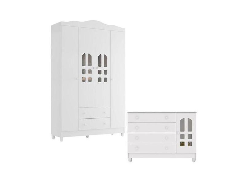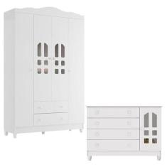 Cômoda Gran Selena E Guarda Roupa Infantil New Selena 4 Portas Branco