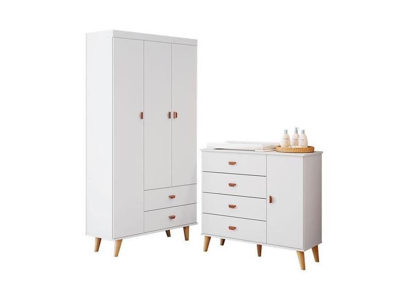 O menor preço encontrado no Brasil para Cômoda Infantil Com Guarda Roupa 3 Portas Duda Branco Acetinado Bétula atualmente é R$ 913,90.