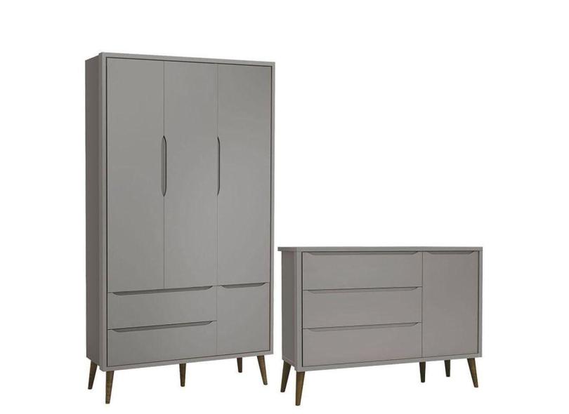 O menor preço encontrado no Brasil para Cômoda Infantil Com Porta E Guarda Roupa 3 Portas Theo Cinza Com Pés Amadeirado - Reller atualmente é R$ 2.141,15.