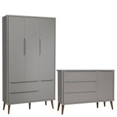 Cômoda Infantil Com Porta E Guarda Roupa 3 Portas Theo Cinza Com Pés Amadeirado - Reller