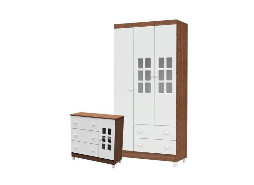 Cômoda Infantil E Guarda Roupa 3 Portas Mariah Branco Acetinado Amadei