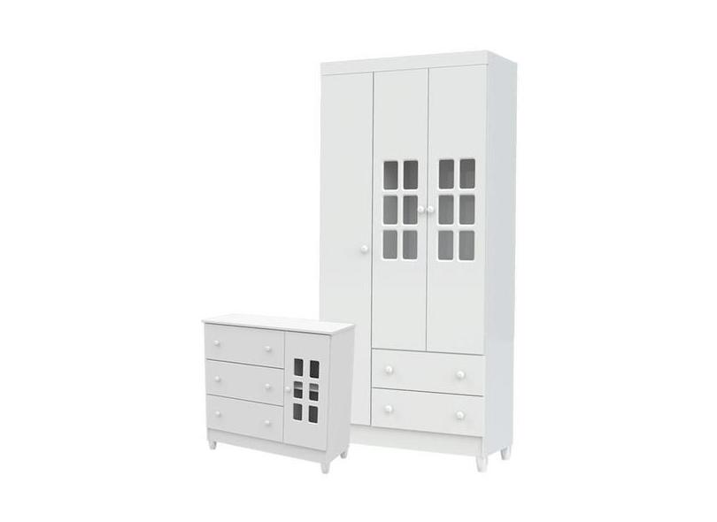 Cômoda Infantil E Guarda Roupa 3 Portas Mariah Branco Brilho - Carolin