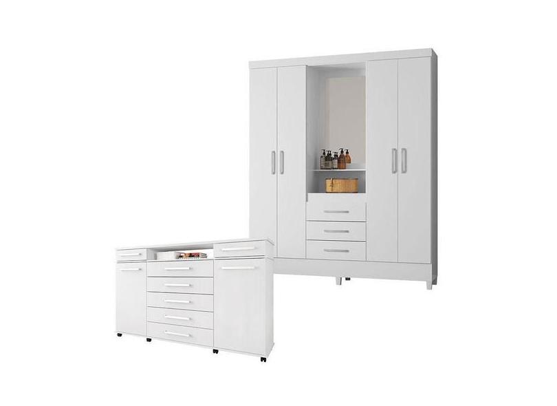 O menor preço encontrado no Brasil para Cômoda London E Guarda Roupa Casal Capelinha Pérsia Branco Flex - Demó atualmente é R$ 1.446,36.