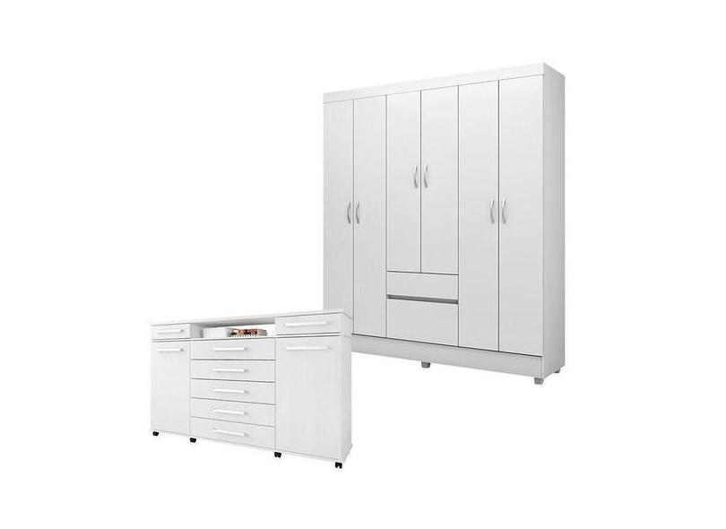 Cômoda London E Guarda Roupa Casal Flash 2 Branco Flex - Demóbile - De