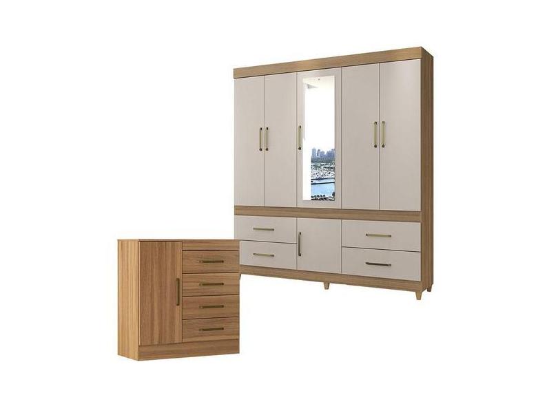 O menor preço encontrado no Brasil para Cômoda Montevidéu E Guarda Roupa Casal Guarujá Amêndola Off White - De atualmente é R$ 1.293,36.