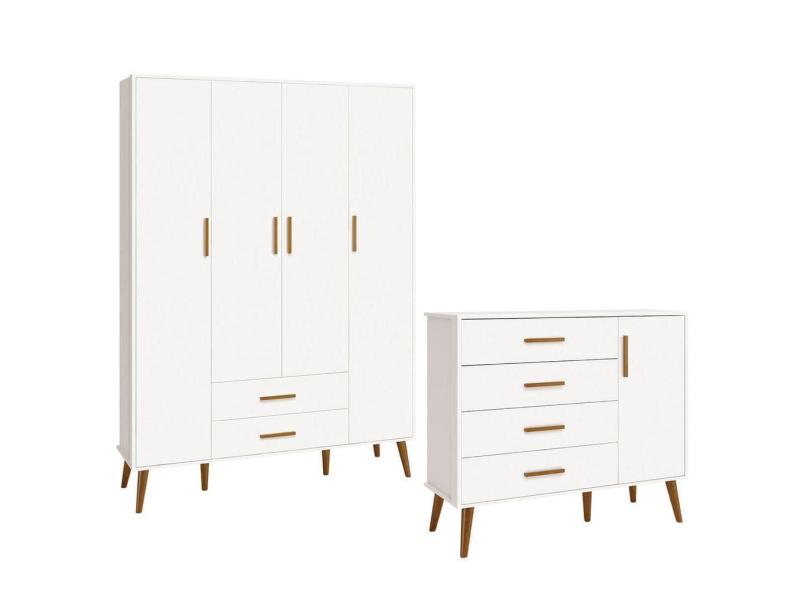 O menor preço encontrado no Brasil para Comoda Sapateira e Guarda Roupa Isis Retrô 4 Portas 2 Gavetas Branco Fosco - Reller atualmente é R$ 2.260,99.