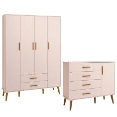 O menor preço encontrado no Brasil para Comoda Sapateira e Guarda Roupa Isis Retrô 4 Portas 2 Gavetas Rosa Fosco - Reller atualmente é R$ 2.260,99.