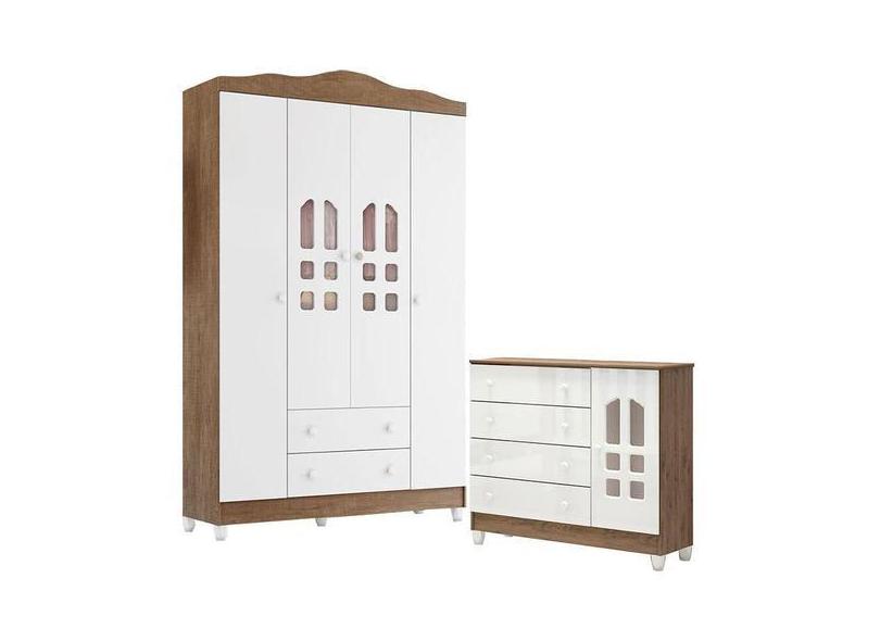 Cômoda Selena E Guarda Roupa Infantil New Selena 4 Portas Branco Aceti