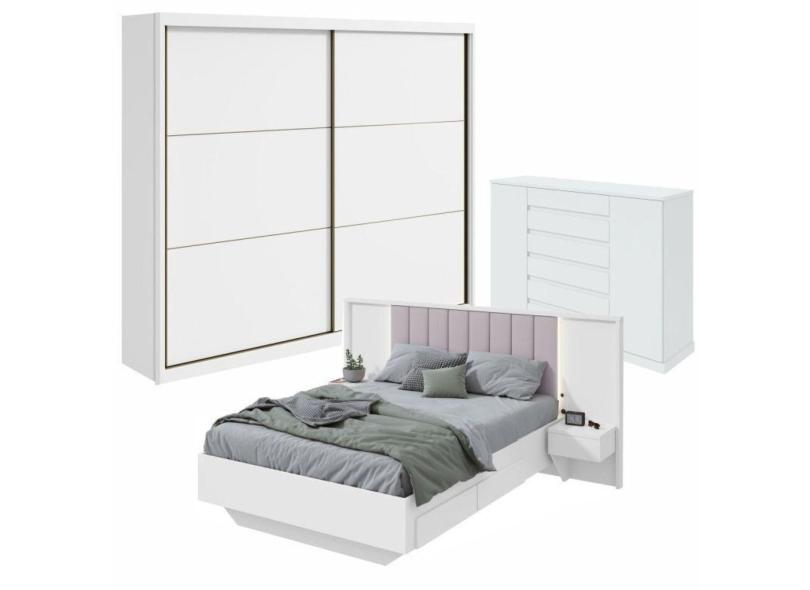Conjunto com Guarda-Roupa Casal Toronto Plus e Cômoda Vedra e Cama Casal Solaris Branco