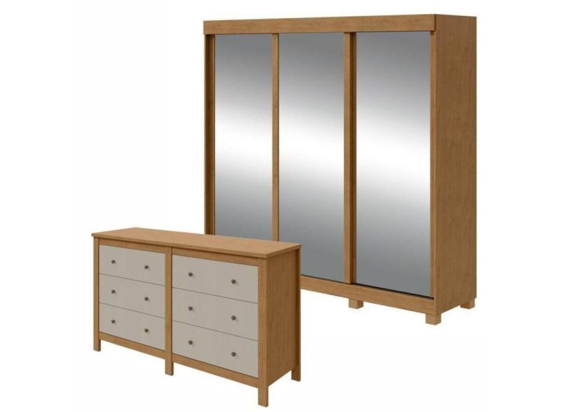 O menor preço encontrado no Brasil para Conjunto de Guarda-Roupa 3 Portas 3 Gavetas Saion Plus Super Glass com Pés e Cômoda Maggiore New Amêndoa Clean/Off White/Amêndoa Clean atualmente é R$ 2.145,83.