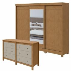 O menor preço encontrado no Brasil para Conjunto de Guarda-roupa 3 Portas 4 Gavetas Nice com Espelho e com Pése Cômoda Maggiore New Amêndoa Clean/off White atualmente é R$ 2.609,22.