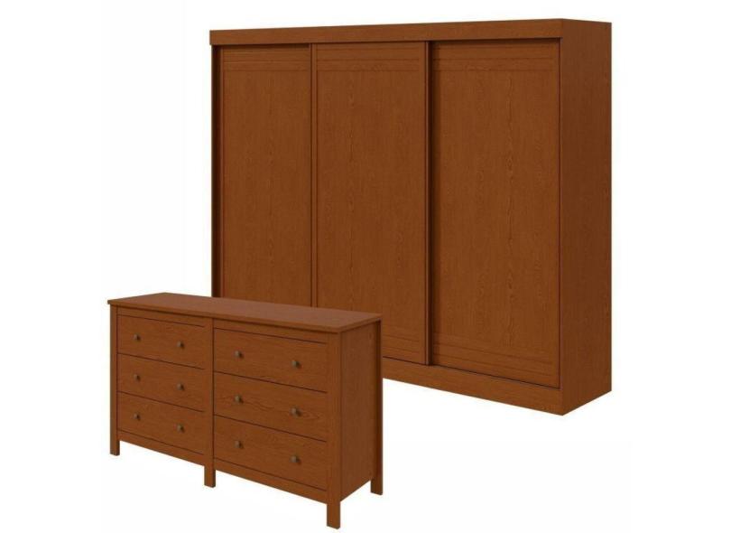 Conjunto de Guarda-Roupa 3 Portas 4 Gavetas Nice e Cômoda 6 Gavetas 162x92cm Maggiore New Frassino/Off White