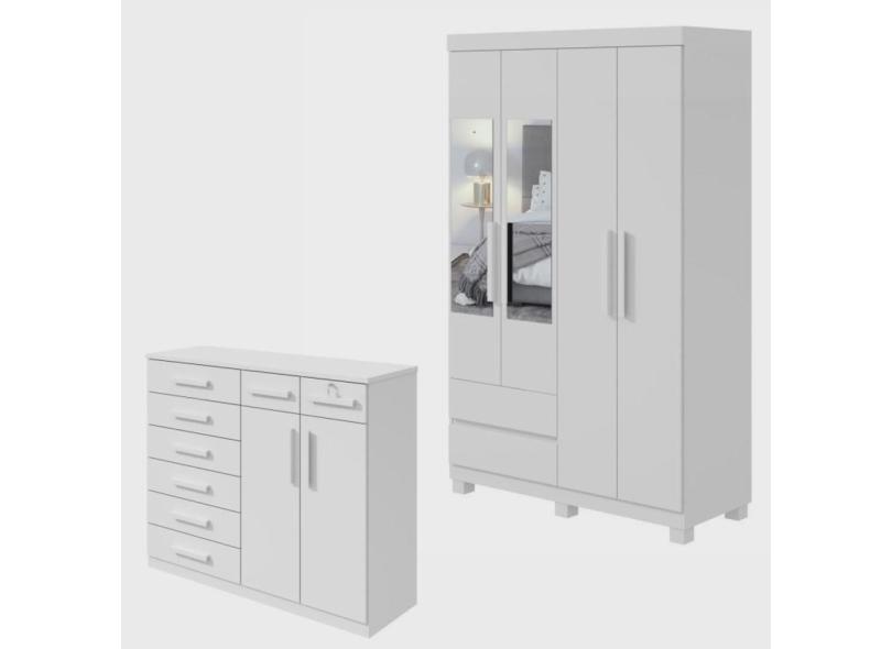 O menor preço encontrado no Brasil para Conjunto de Guarda-Roupa 4 Portas 2 Gavetas Zeus com Espelho e com Pés e Cômoda Toronto Branco atualmente é R$ 1.459,35.