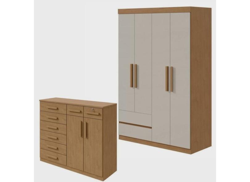 O menor preço encontrado no Brasil para Conjunto de Guarda-Roupa 4 Portas 2 Gavetas Zeus e Cômoda 8 Gavetas 2 Portas Toronto Amêndoa atualmente é R$ 1.411,39.