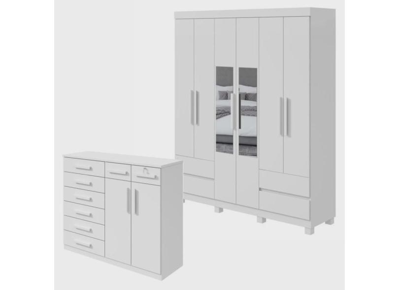 O menor preço encontrado no Brasil para Conjunto de Guarda-Roupa 6 Portas 4 Gavetas Zeus com Espelho e com Pés e Cômoda Toronto Branco atualmente é R$ 1.540,02.