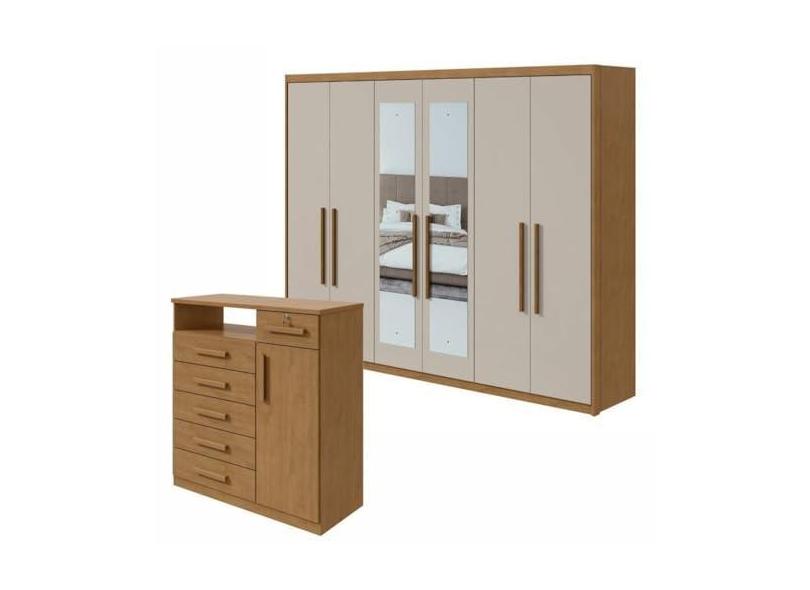 O menor preço encontrado no Brasil para Conjunto de Guarda-roupa 6 portas Áries com espelho e Cômoda Da Vinci Amêndoa Clean/off White atualmente é R$ 2.180,40.