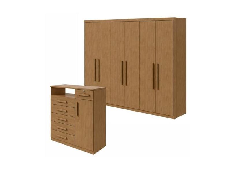 O menor preço encontrado no Brasil para Conjunto de Guarda-roupa 6 portas Áries e Cômoda Da Vinci com Nicho Amêndoa Clean atualmente é R$ 1.935,96.