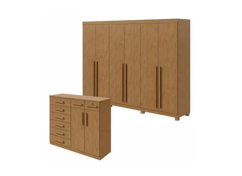 Conjunto de Guarda-roupa 6 Portas com Pés Bertha com Cômoda Toronto Amêndoa Clean