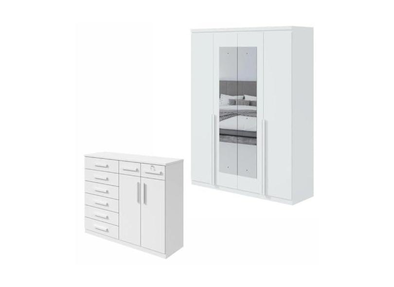 O menor preço encontrado no Brasil para Conjunto de Guarda-roupa Alonzo 4 portas com espelho e Cômoda Toronto Branco atualmente é R$ 1.751,13.