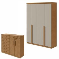 Conjunto de Guarda-roupa Alonzo e Cômoda Toronto Amêndoa Clean/off White