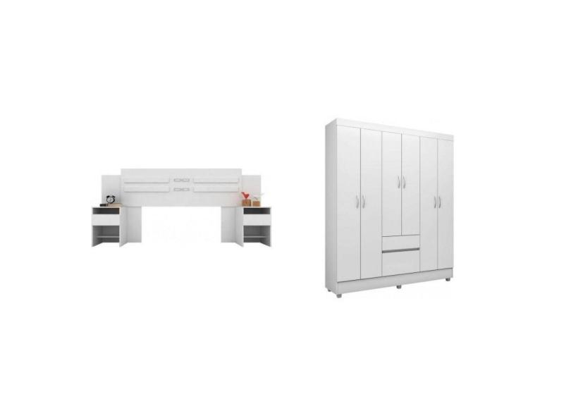 Conjunto Guarda Roupa Casal 6 Portas e Cabeceira com 2 Mesas de Apoio Yescasa Branco