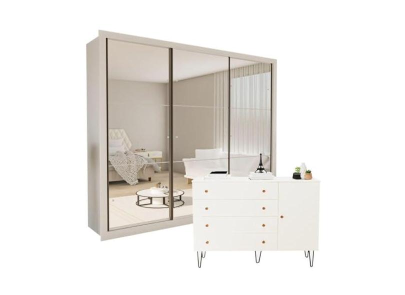 O menor preço encontrado no Brasil para Conjunto Guarda-roupa Casal com 9 Espelho 3 Portas e Cômoda 1 Porta 4 Gavetas Branco atualmente é R$ 3.137,22.