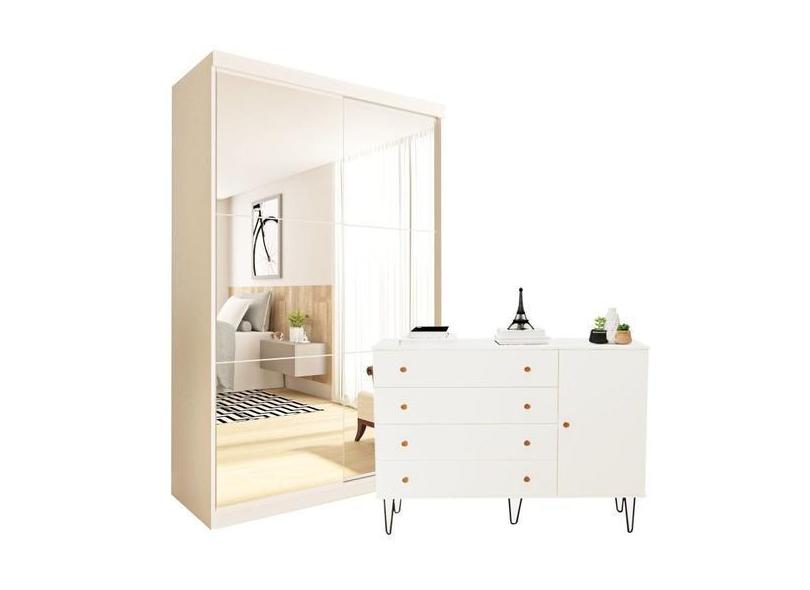 O menor preço encontrado no Brasil para Conjunto Guarda-Roupa Solteiro 2 Portas De Correr E Cômoda 1 Porta 4 G atualmente é R$ 1.498,85.