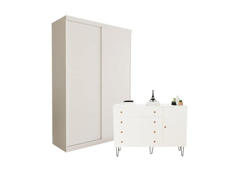 Conjunto Guarda-roupa Solteiro 2 Portas e Cômoda 1 Porta 4 Gavetas Branco