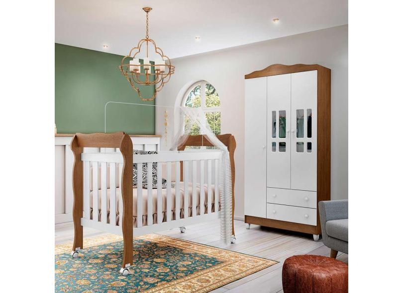 Conjunto Infantil Guarda Roupa 3 Portas Ariel, Berço 3 em 1 Americano Lila Br Fosco Amadeirado Carolina Baby