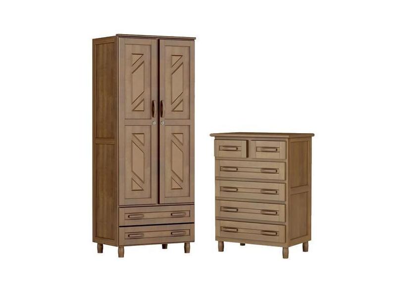 Conjunto p/ Quarto Imbuia Guarda-Roupa Multiuso Flex 2 Portas 2 Gaveta