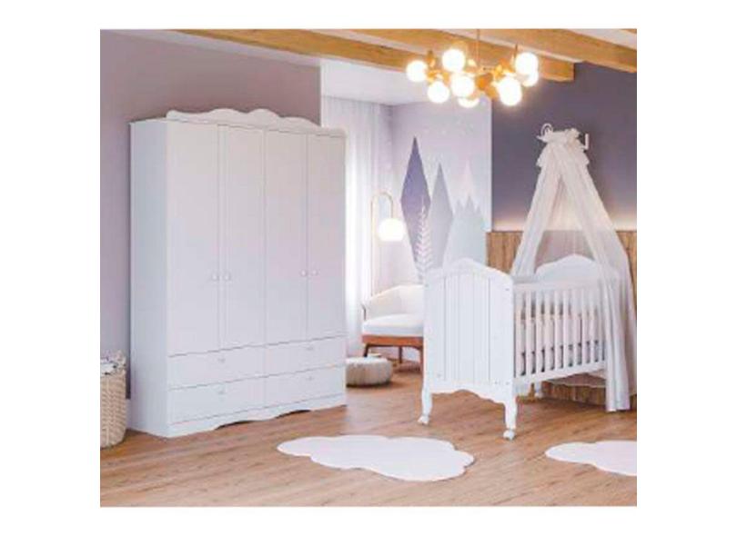 Conjunto Quarto de Bebe com Berço e Guarda Roupa 100% MDF Harmonia Encanto Permóbili Baby Branco