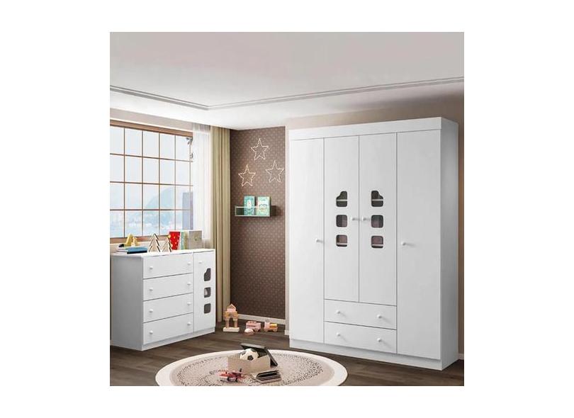 Conjunto Quarto De Bebê Guarda Roupa E Cômoda Sapateira Lívia Branco -