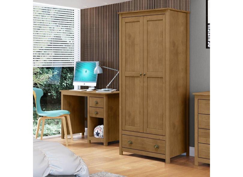 Conjunto Quarto Guarda-Roupa 2 Portas, Escrivaninha 2 Gavetas Topázio Freijó Madeira Pinus - Finestra