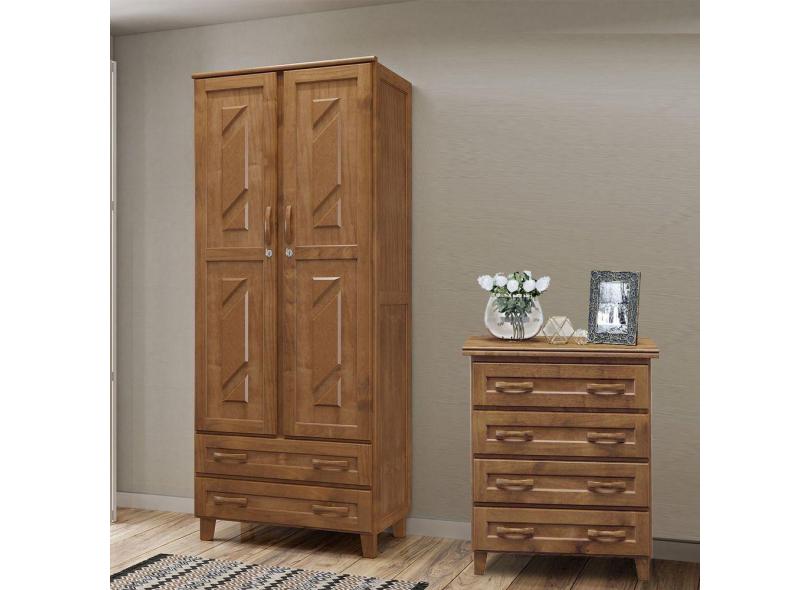 Conjunto Quarto Imbuia: Guarda-roupa Multiuso Flex 2 Portas 2 Gavetas, Cômoda 4 Gavetas Madeira
