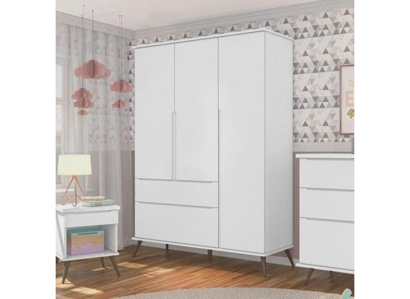 Conjunto Quarto Infantil com Guarda-roupa 3 Portas e Cômoda com Sapateira Melinda 100% Mdf Branco