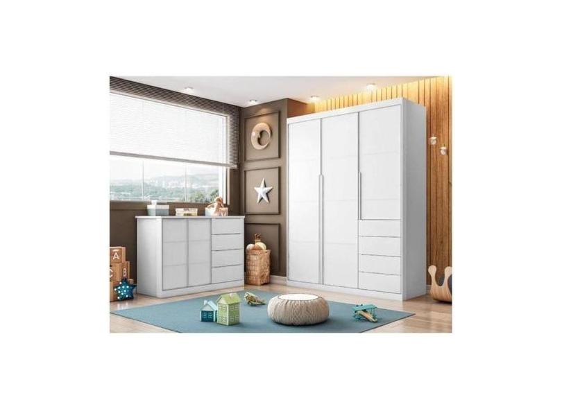 Conjunto Quarto Infantil Pérola Com Guarda Roupa 3 Portas 4 Gavetas E