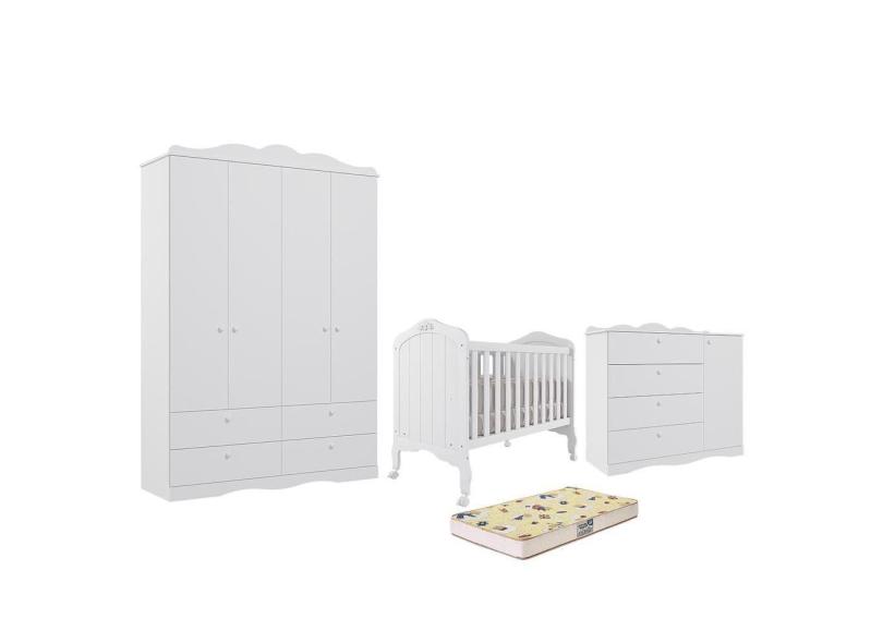Dormitório Encanto Guarda-Roupa, Cômoda e Berço Harmonia com Colchão Supreme - Permóbili Baby