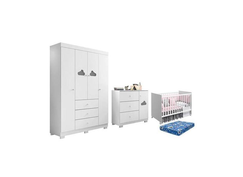 O menor preço encontrado no Brasil para Dormitório Infantil Ane Guarda Roupa, Cômoda, Berço Tico Com Colchão P atualmente é R$ 1.649,48.