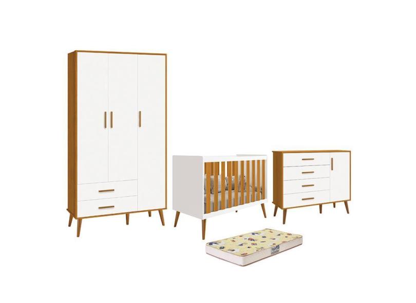 O menor preço encontrado no Brasil para Dormitório Infantil Isis Guarda Roupa 3 Portas, Cômoda 1 Porta E Berço Branco/Savana Com Colchão D18 - Reller Móveis atualmente é R$ 2.083,35.