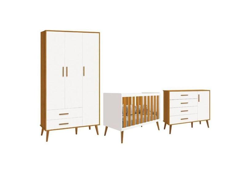O menor preço encontrado no Brasil para Dormitório Infantil Isis Guarda Roupa 3 Portas, Cômoda 1 Porta E Berço Branco/savana - Reller Móveis Branco/savana atualmente é R$ 2.122,93.
