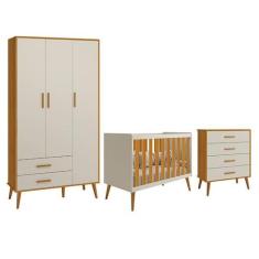 O menor preço encontrado no Brasil para Dormitório Infantil Isis Guarda Roupa 3 Portas, Cômoda E Berço Areia/Savana Com Colchão D18 - Reller Móveis atualmente é R$ 1.962,65.