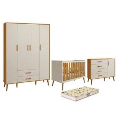 O menor preço encontrado no Brasil para Dormitório Infantil Isis Guarda Roupa 4 Portas, Cômoda 1 Porta E Berço Areia/Savana Com Colchão D18 - Reller Móveis atualmente é R$ 2.478,60.