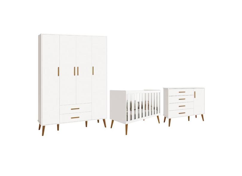 O menor preço encontrado no Brasil para Dormitório Infantil Isis Guarda Roupa 4 Portas, Cômoda 1 Porta E Berço Branco - Reller Móveis atualmente é R$ 2.355,35.