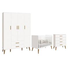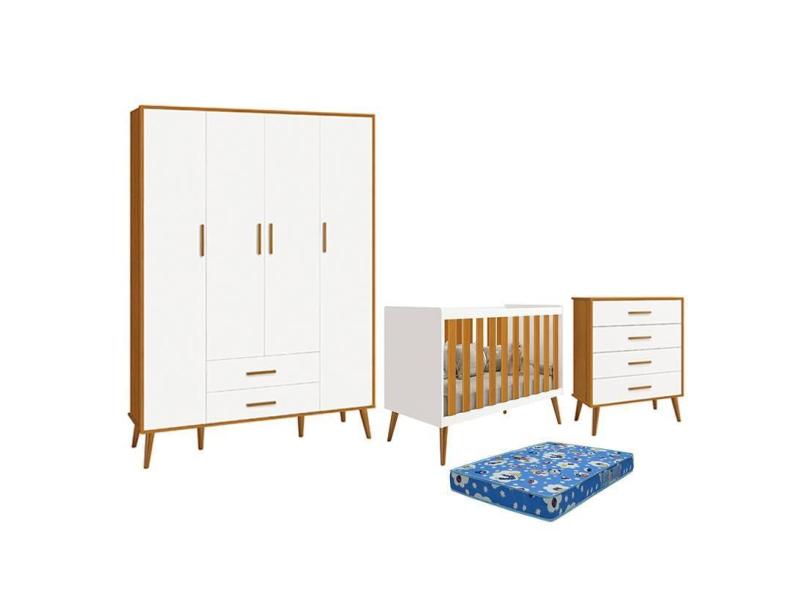 O menor preço encontrado no Brasil para Dormitório Infantil Isis Guarda Roupa 4 Portas, Cômoda e Berço com Colchão - Reller Móveis Branco/Savana atualmente é R$ 2.234,65.
