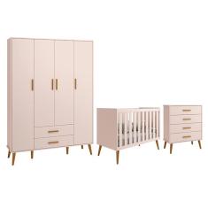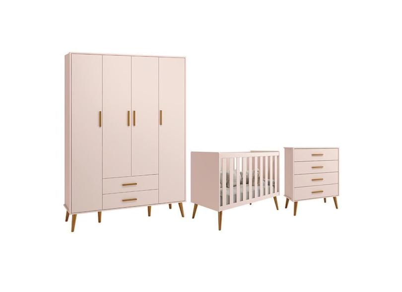O menor preço encontrado no Brasil para Dormitório Infantil Isis Guarda Roupa 4 Portas, Cômoda E Berço Rosa - Reller Móveis atualmente é R$ 2.234,65.