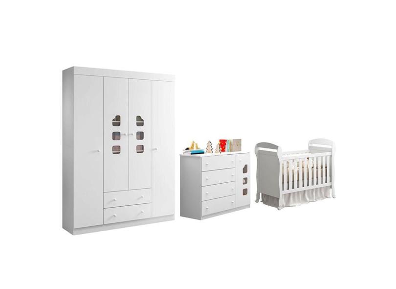 Dormitório Infantil Lívia Guarda Roupa, Cômoda e Berço Danny - Phoenix Baby Branco